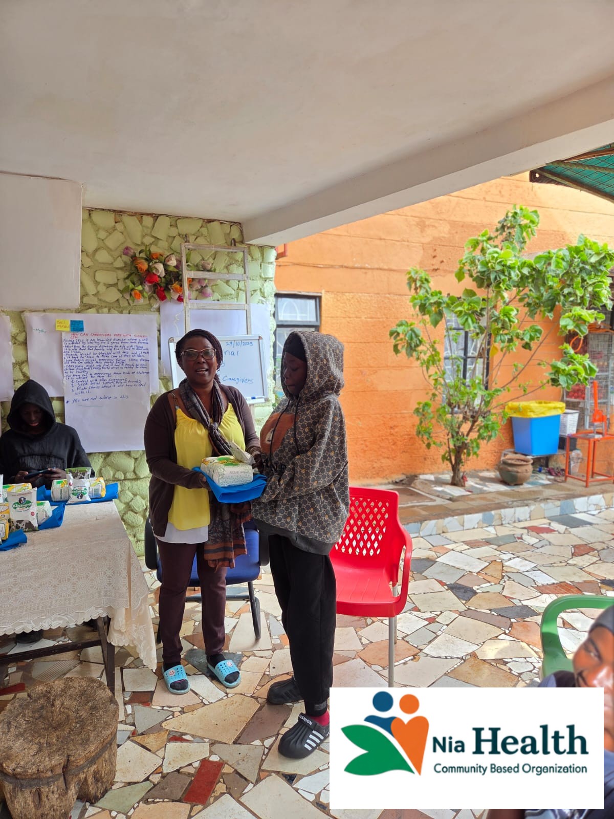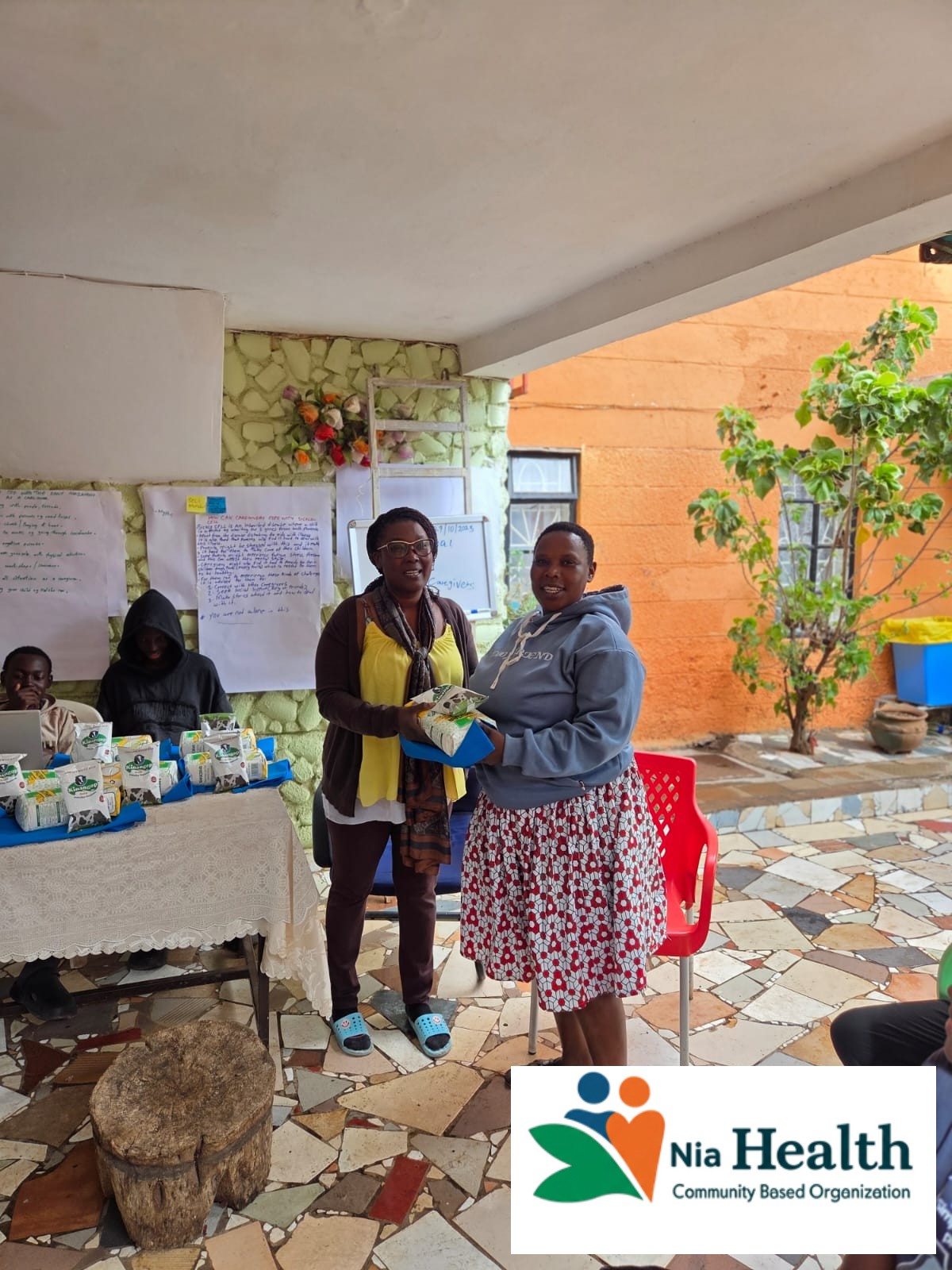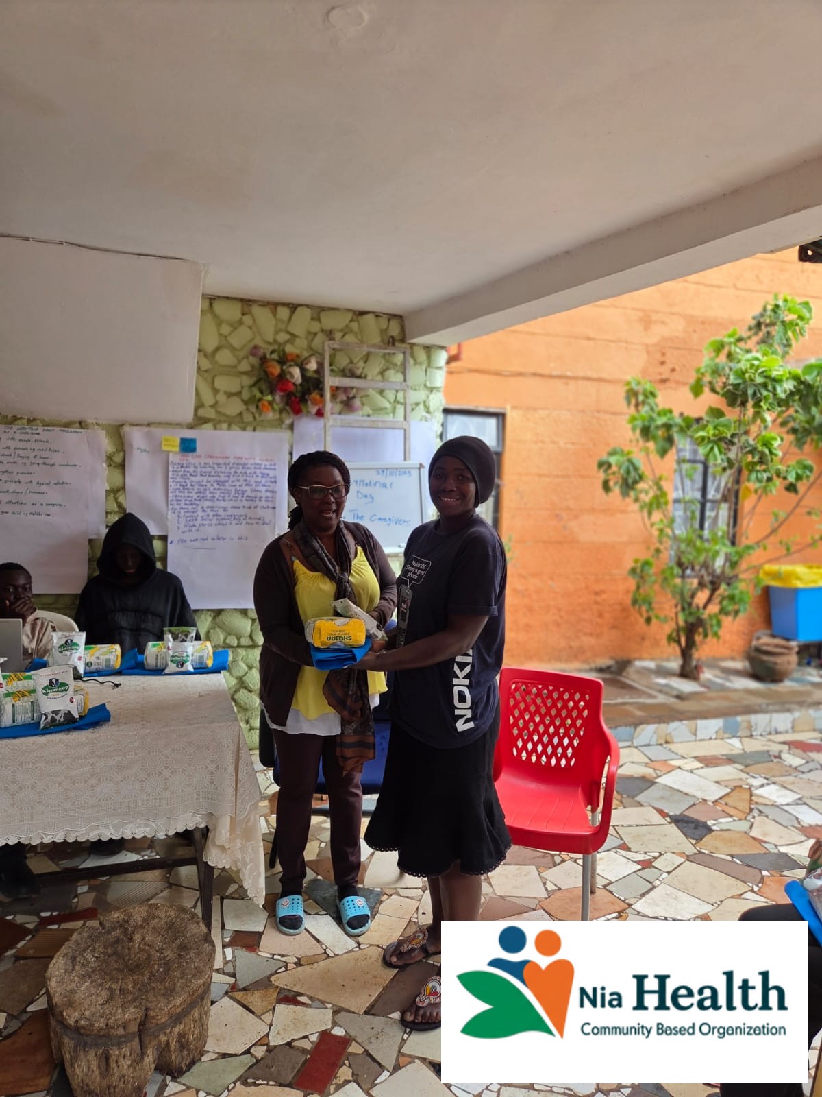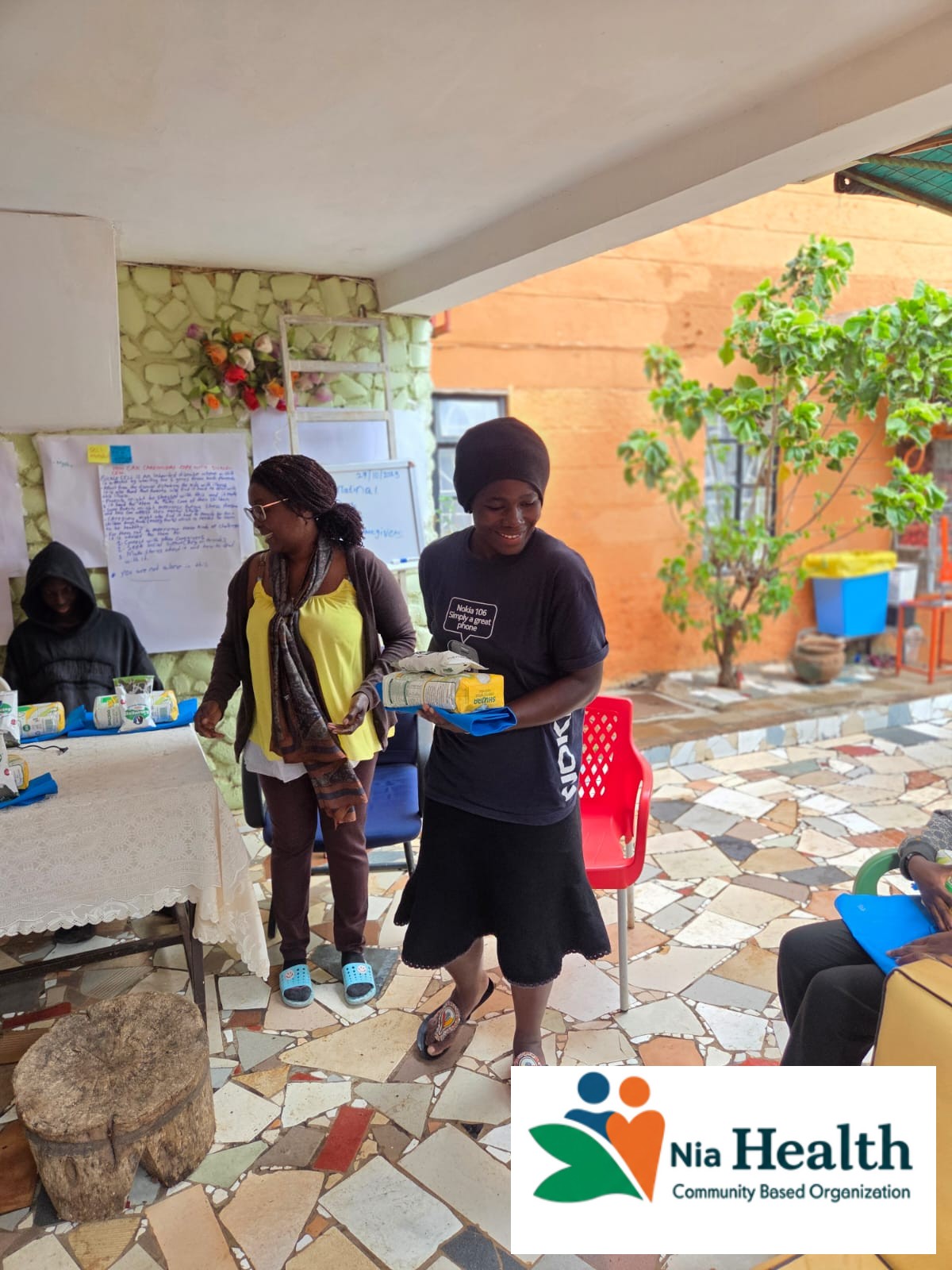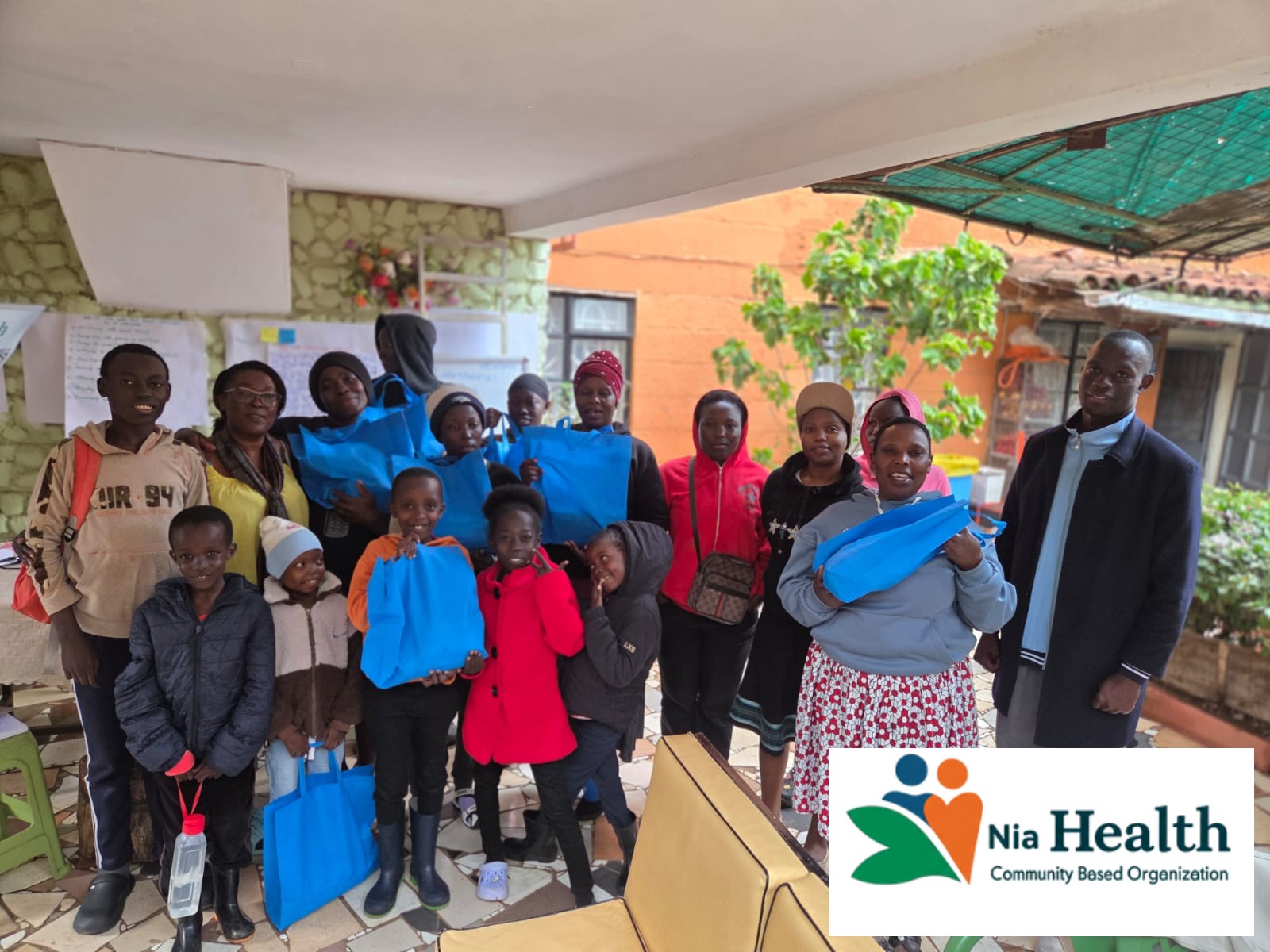 Nia Community Members Holding Food In Nema Bags Given To Them